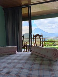 View of the volcano, nice deck outside. Rooms big enough, hot shower. Breakfast simple but good. Close to some attractions, car needed for access. Grounds look well kept.