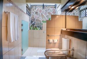 The hotel features bright rooms with air conditioning, flat-screen cable TVs, minibars, coffee makers, and terraces overlooking either the garden or Arenal Volcano. Private bathrooms include showers or baths with hot tubs. Accessible accommodations provide wheelchair-friendly entrances and bathrooms equipped with shower chairs and grab rails.