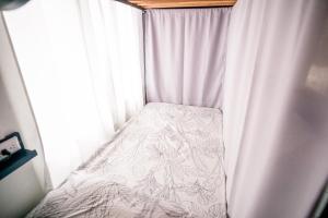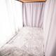The hostel provides various room types including dormitory beds with soundproofing and patios, a triple room with air conditioning, private bathroom containing both bathtub and shower, tiled floors, and views of the garden. The double room also has air conditioning and access to a shared bathroom with a shower. Each accommodation includes storage lockers, reading lights near beds, privacy curtains, and electrical sockets for convenience.