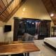 Die klimatisierte Hütte verfügt über ein Schlafzimmer und eine komplett ausgestattete Küche mit Kochutensilien. Der Wohnbereich ist mit einem Schlafsofa und einem Flachbildfernseher eingerichtet, der private Eingang sorgt für zusätzliche Privatsphäre. Gäste können auf der Terrasse entspannen und den Blick auf den Garten genießen.