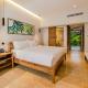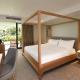 The resort's rooms and suites provide garden or mountain views with air conditioning, flat-screen cable TVs, coffee makers, minibars, and free Wi-Fi. Suites include living areas and outdoor terraces or balconies overlooking tropical landscapes. Bathrooms come equipped with bathrobes, slippers, bathtubs with grab rails or two-person hot tubs plus separate showers. Some rooms have sofa beds and safety boxes.